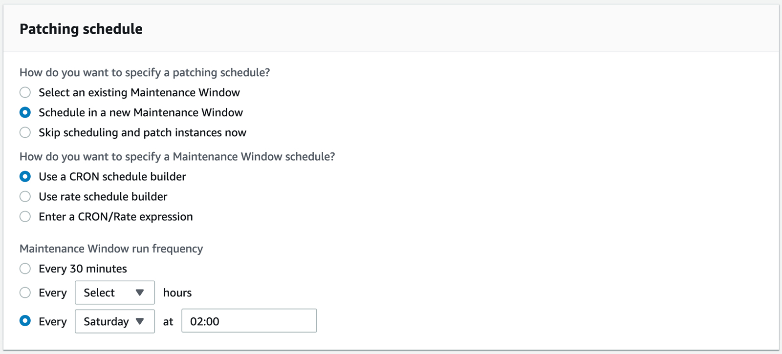 After configuration, Patch Manager will use Run Command to call the RunPatchBaseline document to evaluate which patches should be installed on target instances according to each instance’s operating system type directly or during the defined schedule (Maintenance Window).